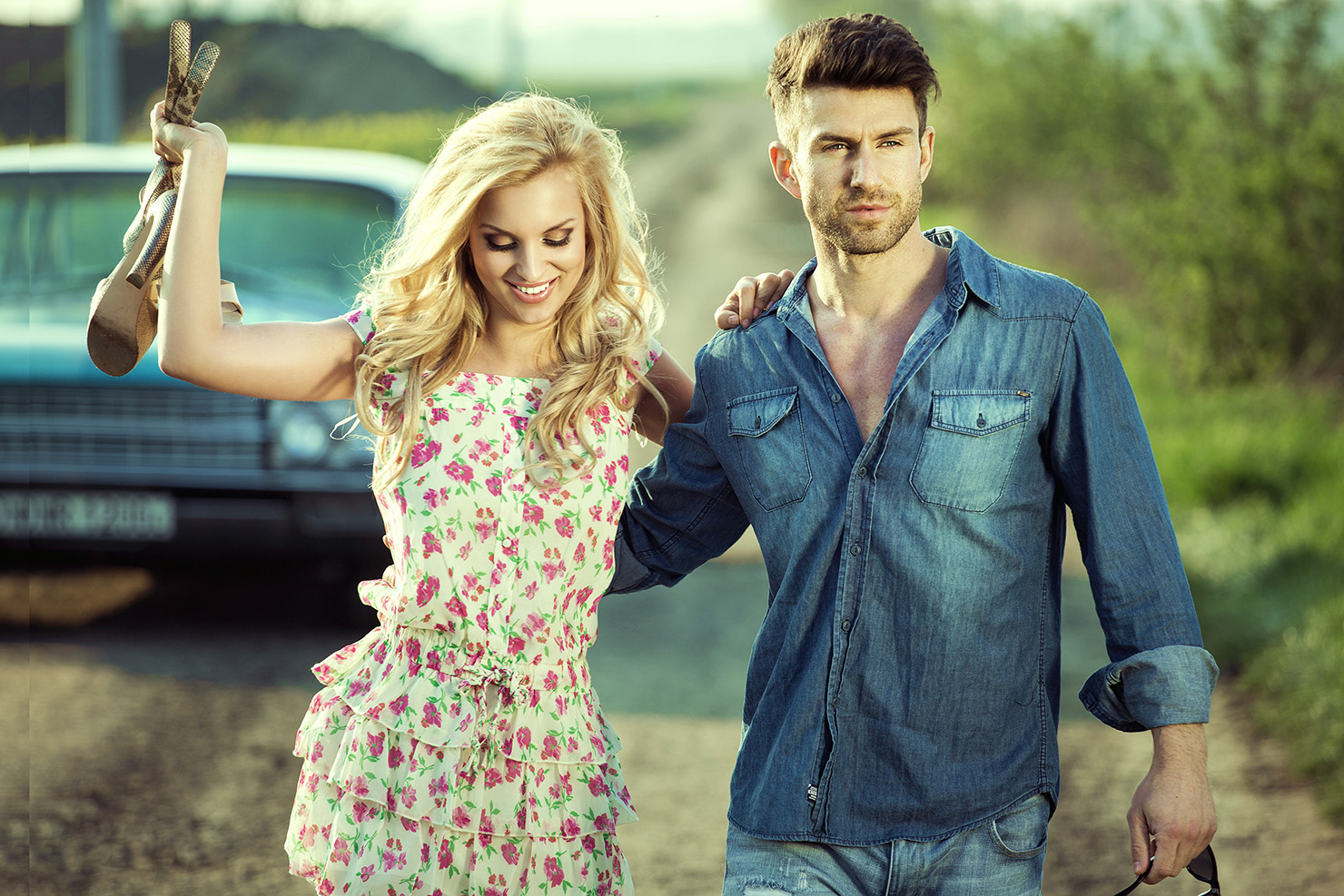 Sexy couple and old car