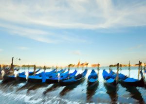 Parked gondolas on Piazza San Marco and The Doge’s Palace embankment (Venice, Italy)